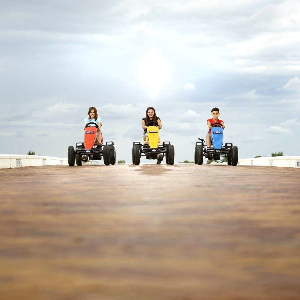 Soll es mühelos über Stock und Stein gehen? Dann haben wir für dich den innovativen E-Pedal-Gokart von BERG. Ganz schnell anfahren oder lieber bequem mit allem Komfort fahren? Auch auf Gras und unbefestigtem Gelände? Das ist jetzt möglich. Je intensiver du trittst, desto mehr Unterstützung bietet der Motor. So sind sogar Geschwindigkeiten von 16 km/h möglich!